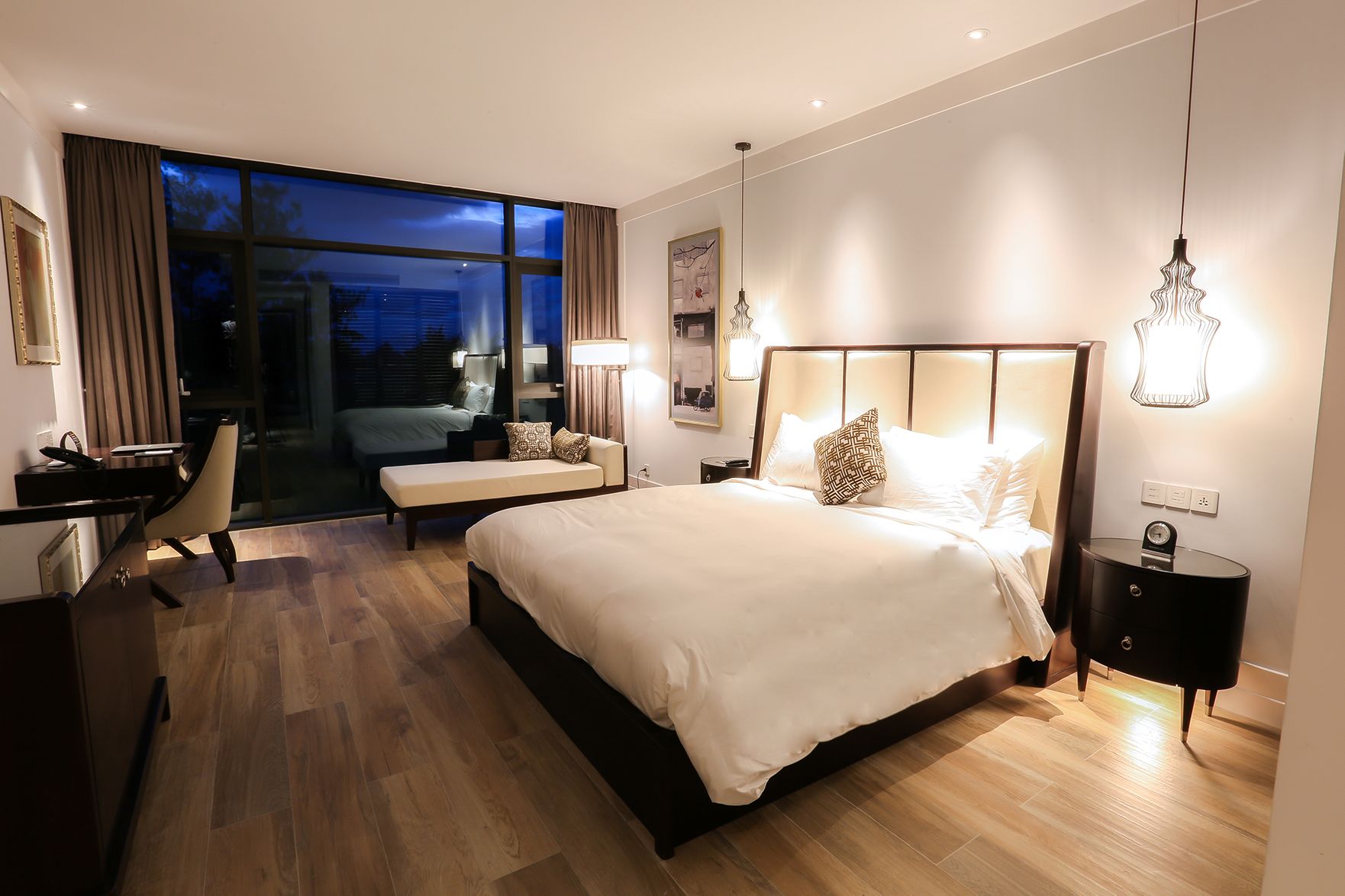 Với gói Stay & Play Montgomerie Links Đà Nẵng, quý khách không chỉ được trải nghiệm sân golf đẳng cấp, mà còn tận hưởng không gian nghỉ dưỡng sang trọng tại Montgomerie Links Hotel & Villas mới khai trương. Khách sạn 5 sao này mang đến phòng nghỉ hiện đại với tầm nhìn ra fairway tuyệt đẹp, minibar miễn phí và nhiều tiện nghi cao cấp. Sau giờ chơi golf, golfer có thể thư giãn tại clubhouse tinh tế, thưởng thức ẩm thực đa dạng, Jacuzzi, phòng gym, phòng họp và internet tốc độ cao miễn phí.